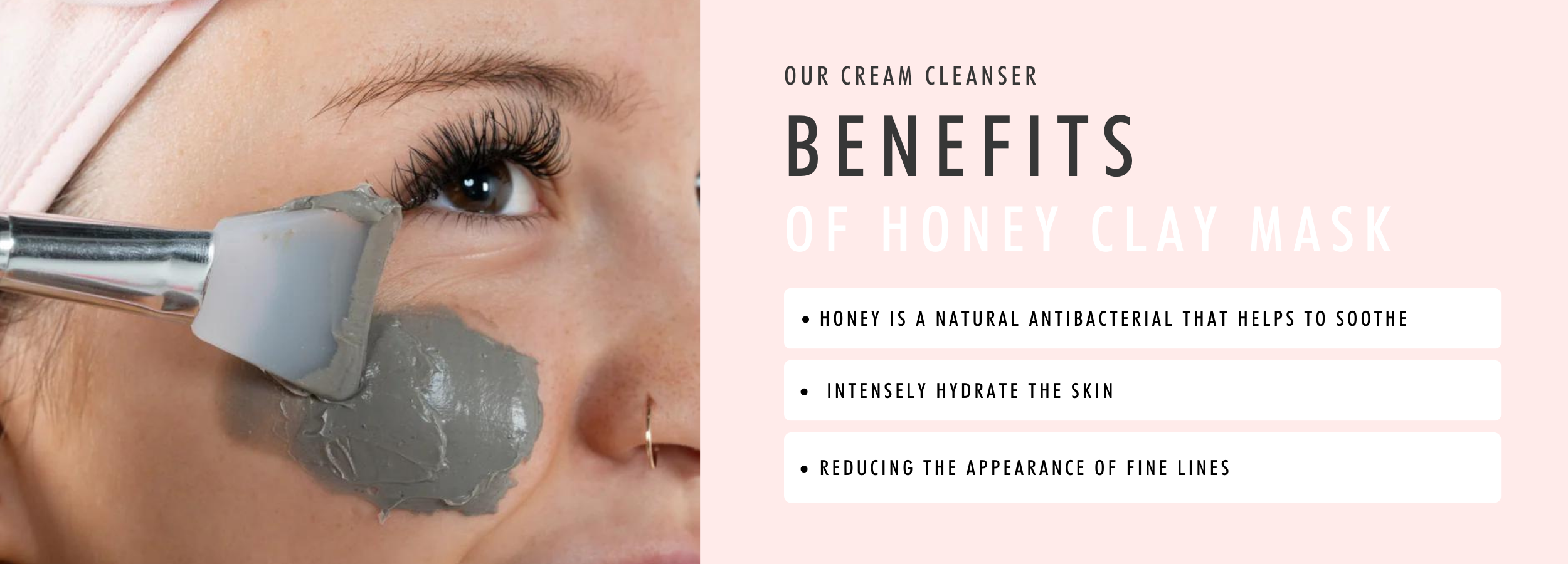 Our Honey Clay Mask is a non drying mask that contains banana extract & pomegranate oil whose nutrient rich properties means that most of the product will absorb into your skin, leaving it refreshed & energised. It's enriched with honey, a natural anti-bacterial and shea butter for intense hydration. Our Honey Clay Mask will calm & soothe your skin whilst reducing the appearance of fine lines.